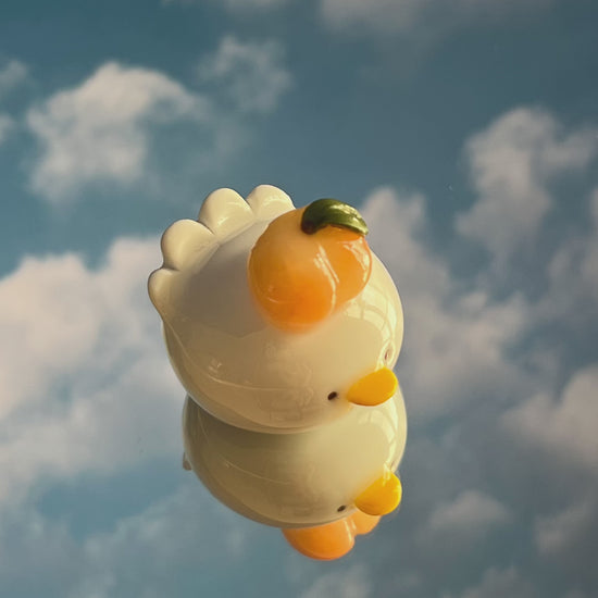 Aggiungi un tocco di leggerezza (e di silliness 👉👈) alla tua scrivania con questa papera in miniatura completa di pesca sulla testa 🍑
